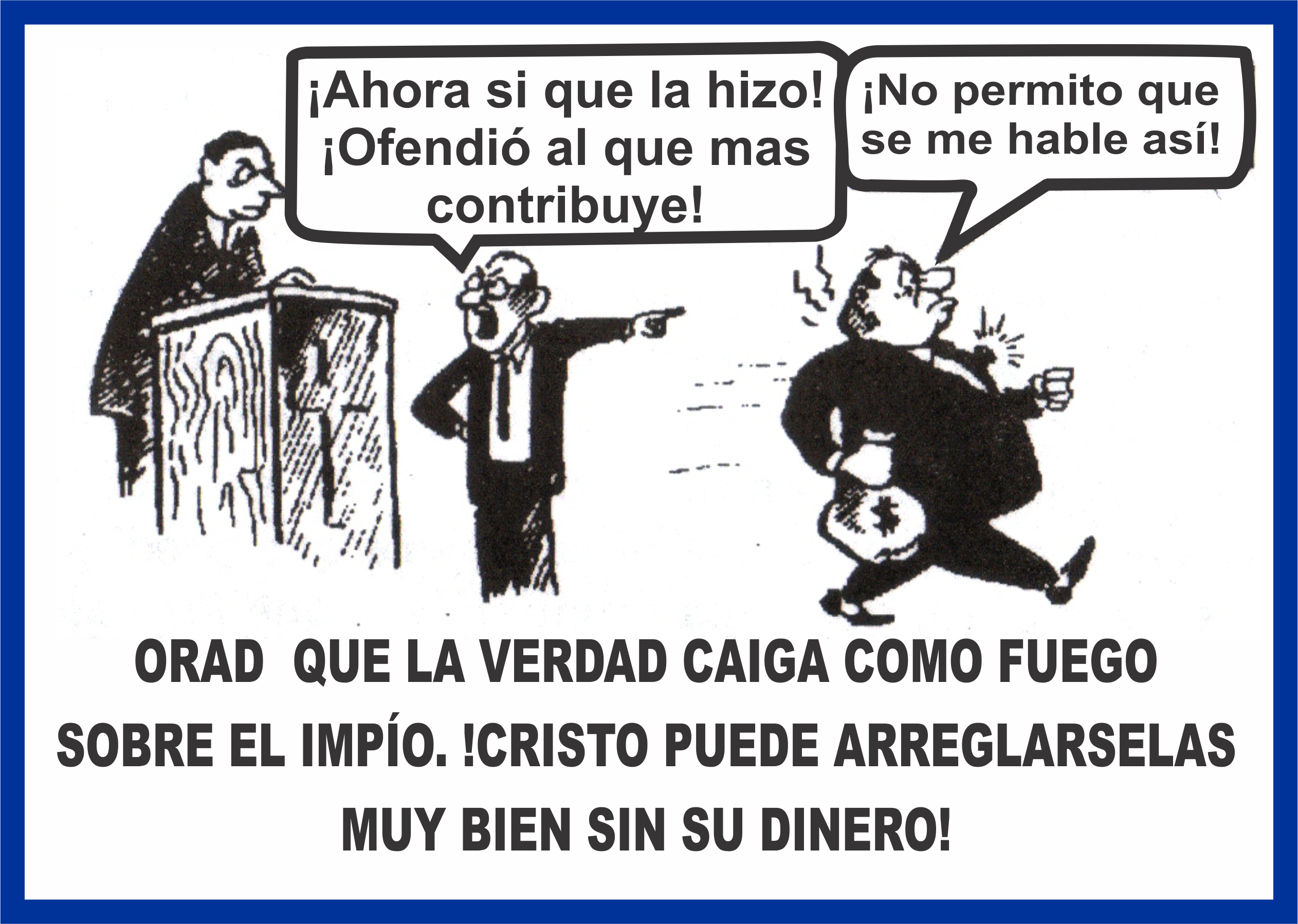 sustente con enseñanzas y solaz (placer, entretenimiento y descanso de las actividades habituales) y ahora no tienen otra cosa que hacer que sentarse y engullir el alimento que se les da. Su parte es pagarle el salario y asistir a sus predicaciones, y con esto creen que están haciendo muchísimo. De él se espera que predique una doctrina sana y pura, que sepa auxiliarles y que les haga sentirse bien. Así esperan alcanzar el cielo. Os digo que IRÁN AL INFIERNO Si esta es la religión que profesan. Ese no es el camino al cielo.